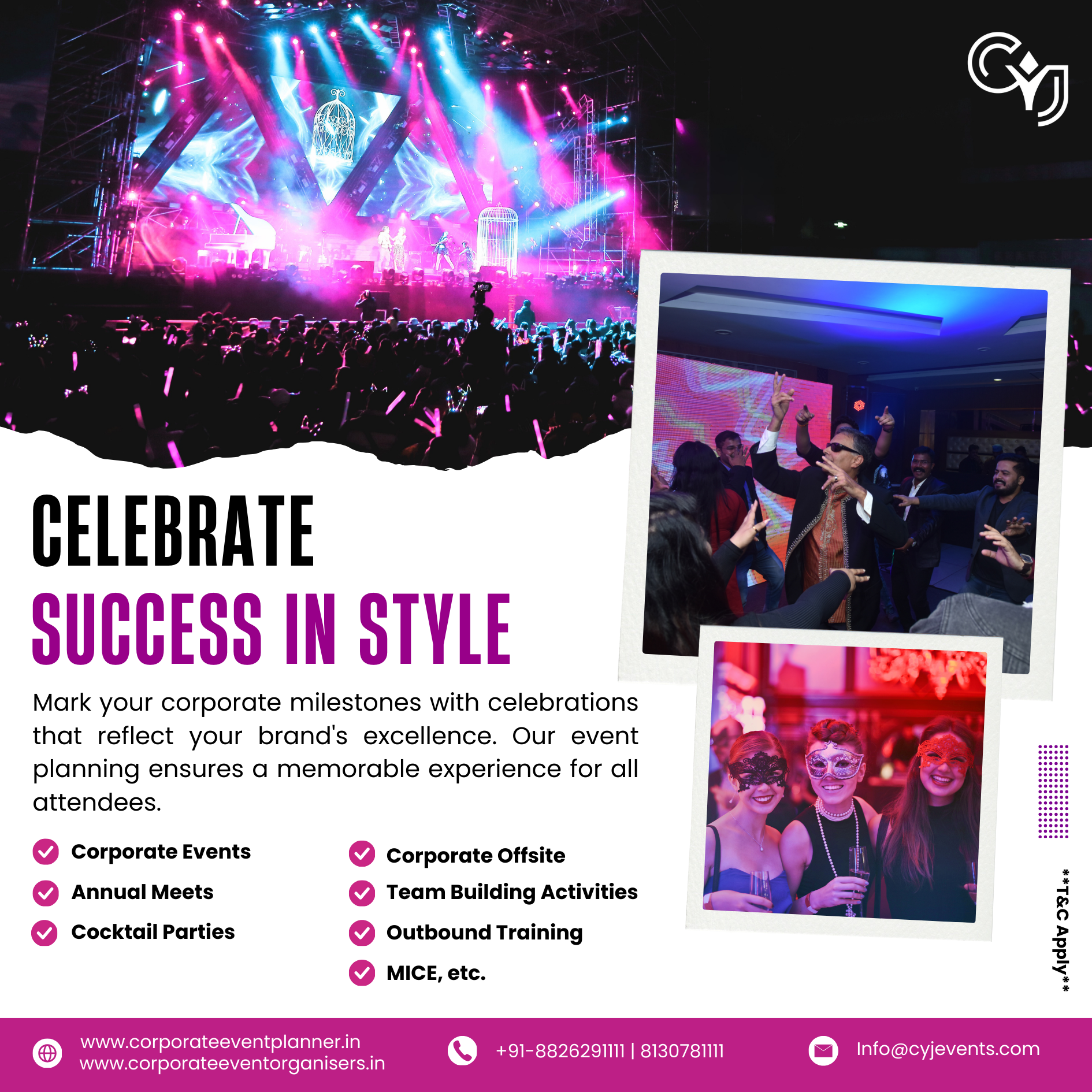 So, what are you waiting for? Make your way to Goa and enjoy Corporate Offsite in Goa with CYJ as we are one of the best Corporate Offsite Event Planners in India. Be it Conference, Team Outing, Seminar, Outbound Training, Team Building, Corporate Offsites, etc. we try to give our best to the clients. Moreover, the other services like DJ, Stage, Buffet Meals, and Outdoor Cocktail Nights for the After Party are arranged at the venue. Also, we provide Team-Building Activities & Outbound Training. Plan your next Corporate Offsite Tours with us, and bond like never before with your colleagues & teammates!
